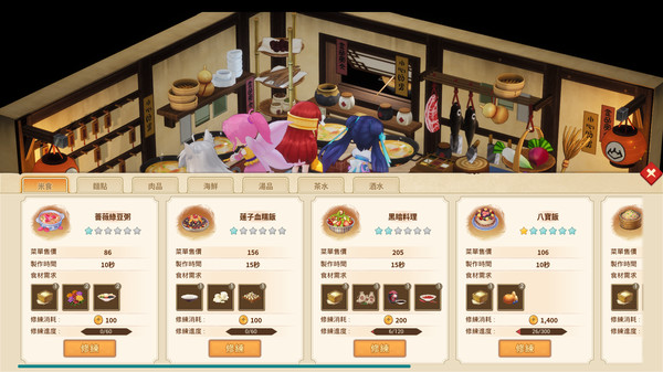 研究提升各式佳餚美食,獲得每日來店客人的優良評價,提高客棧名聲等級。