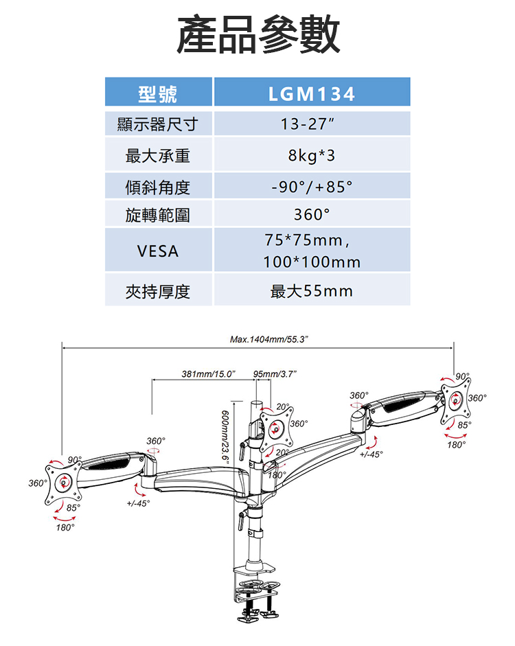 - 旋轉範圍360°