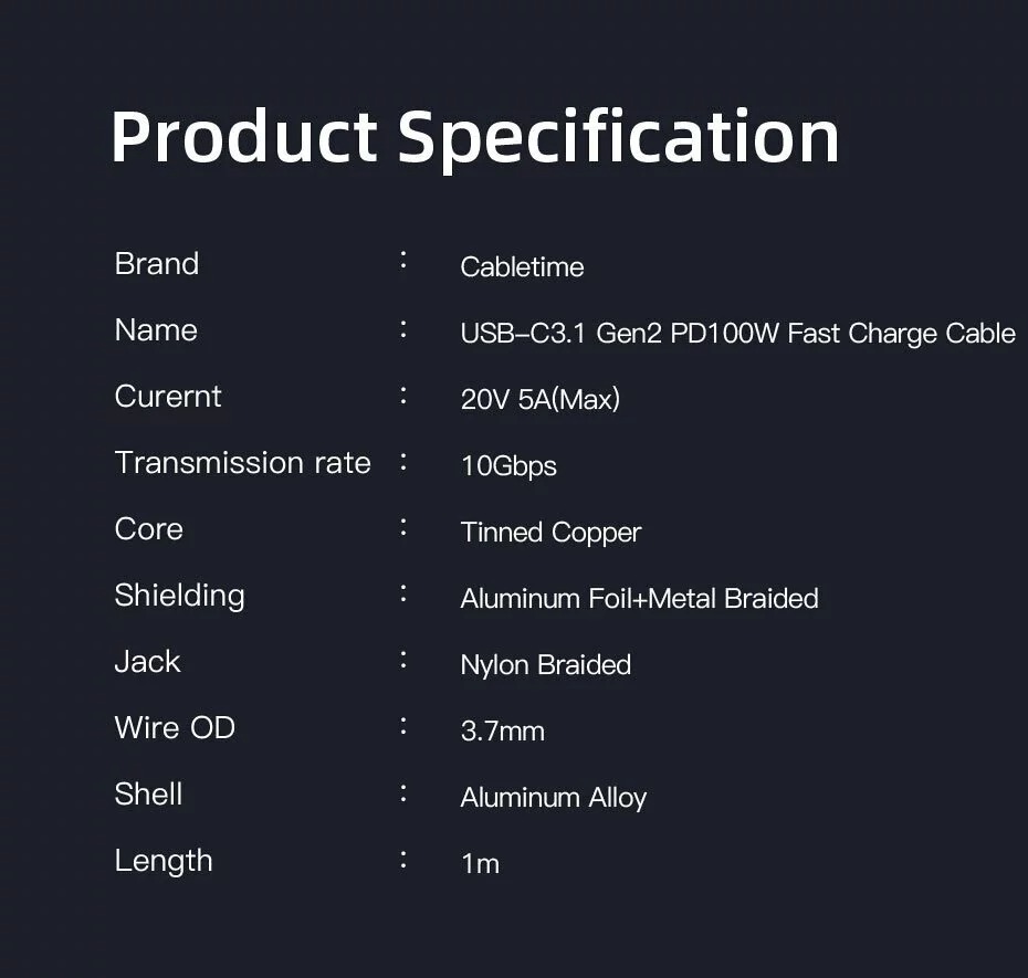 - Connector1 :Type-C Male ,Nickle Plated, With E-MARK