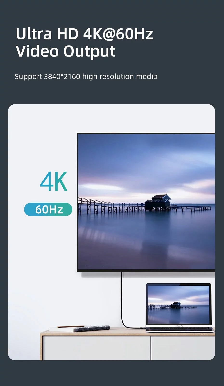 - Transmission Rate:10Gbps, support 4K/60Hz Video