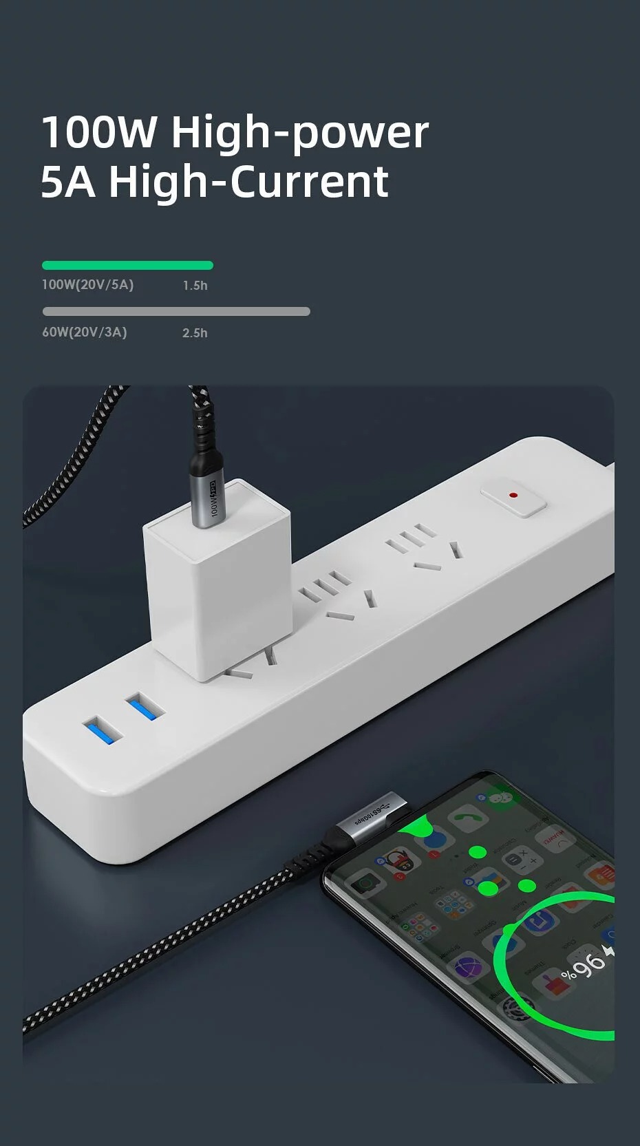 - 100W 5A Fast Charging
