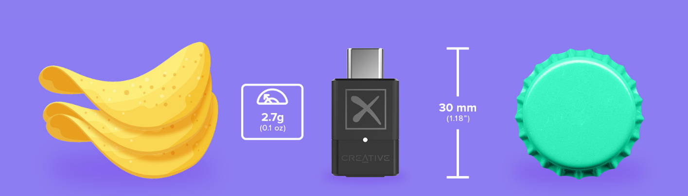 Creative BT-W4 的重量大約相當於三個薯片,在功能上卻是一個龐然大物,但在尺寸上絕對是一個羽量級的產品。它的小巧構造可以與啤酒瓶蓋相媲美,所以它不會帶來任何麻煩。您只需一個空閒的 USB 埠,就可以讓它獲取供電並使用,同時佔用辦公桌上微不足道的空間。