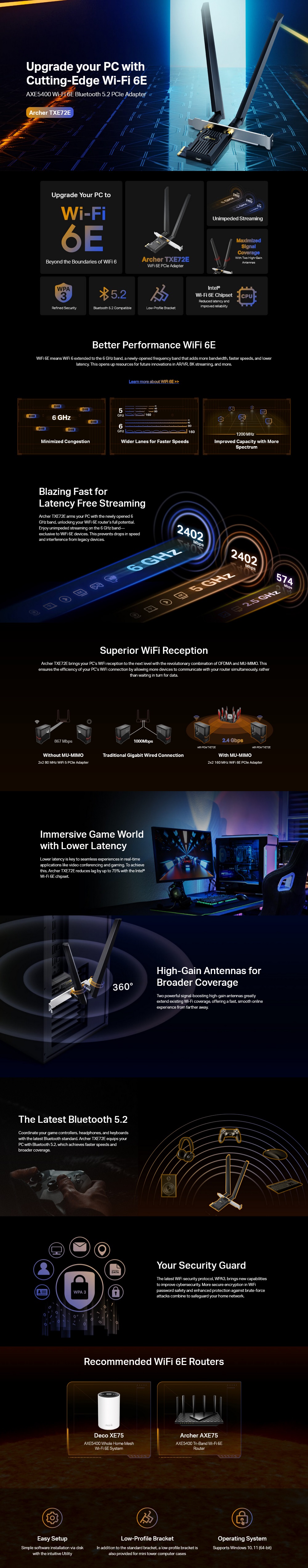 - WiFi 6E Standard — Expand to the clearer, broader 6 GHz band for more bandwidth and faster speeds. Currently 6 GHz Band only supported on Windows 11.