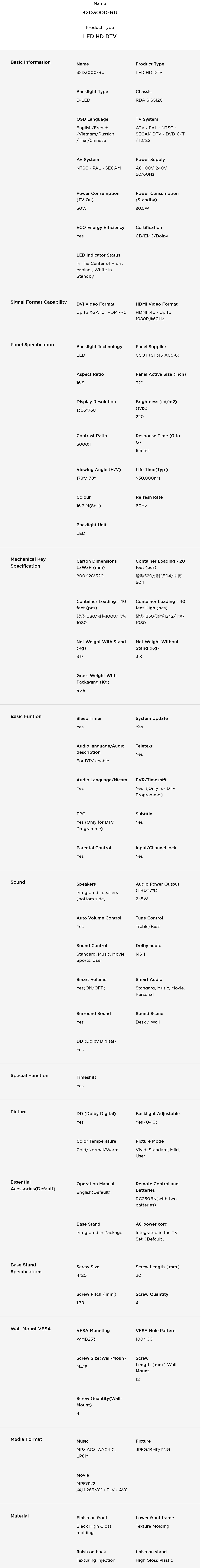 產品規格: