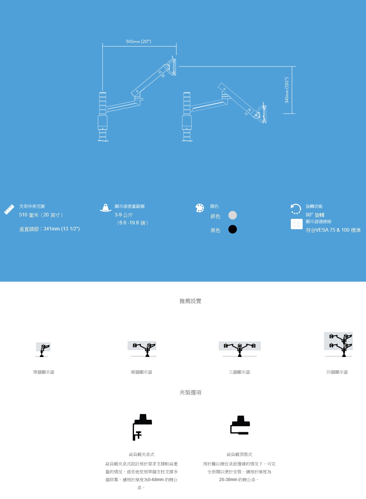 - DYN/013/007/S Flo Modular Dynamic Arm without Desk Clamp (silver) X 2