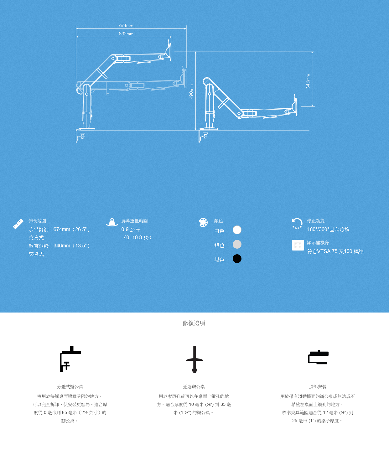 Colebrook Bosson Saunders Ollin Dual Mount Bar monitor arm 顯示器支架