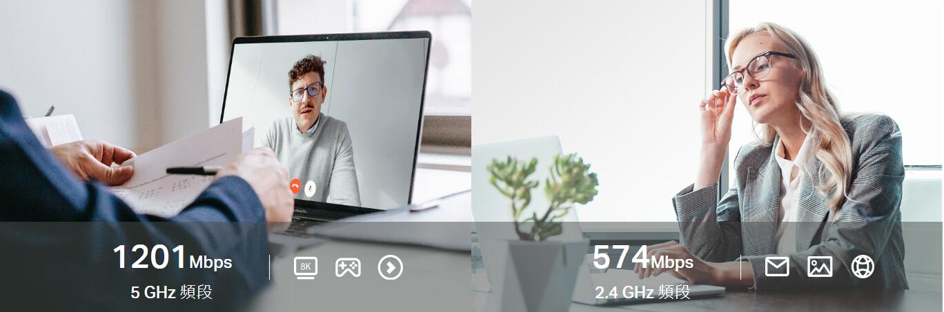 - 高速 WiFi 6 - 以高達 1201 Mbps (5 GHz) + 574 Mbps (2.4 GHz) 的速度打破 Gigabit 障礙。