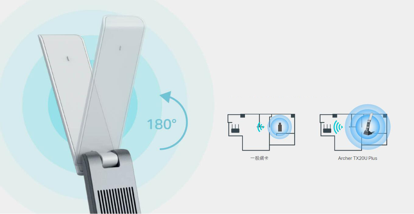 TX20UH 直接為您的設備提供強大的雙頻 WiFi 6,以實現卓越的連接效能和高達 1800 Mbps 的速度。