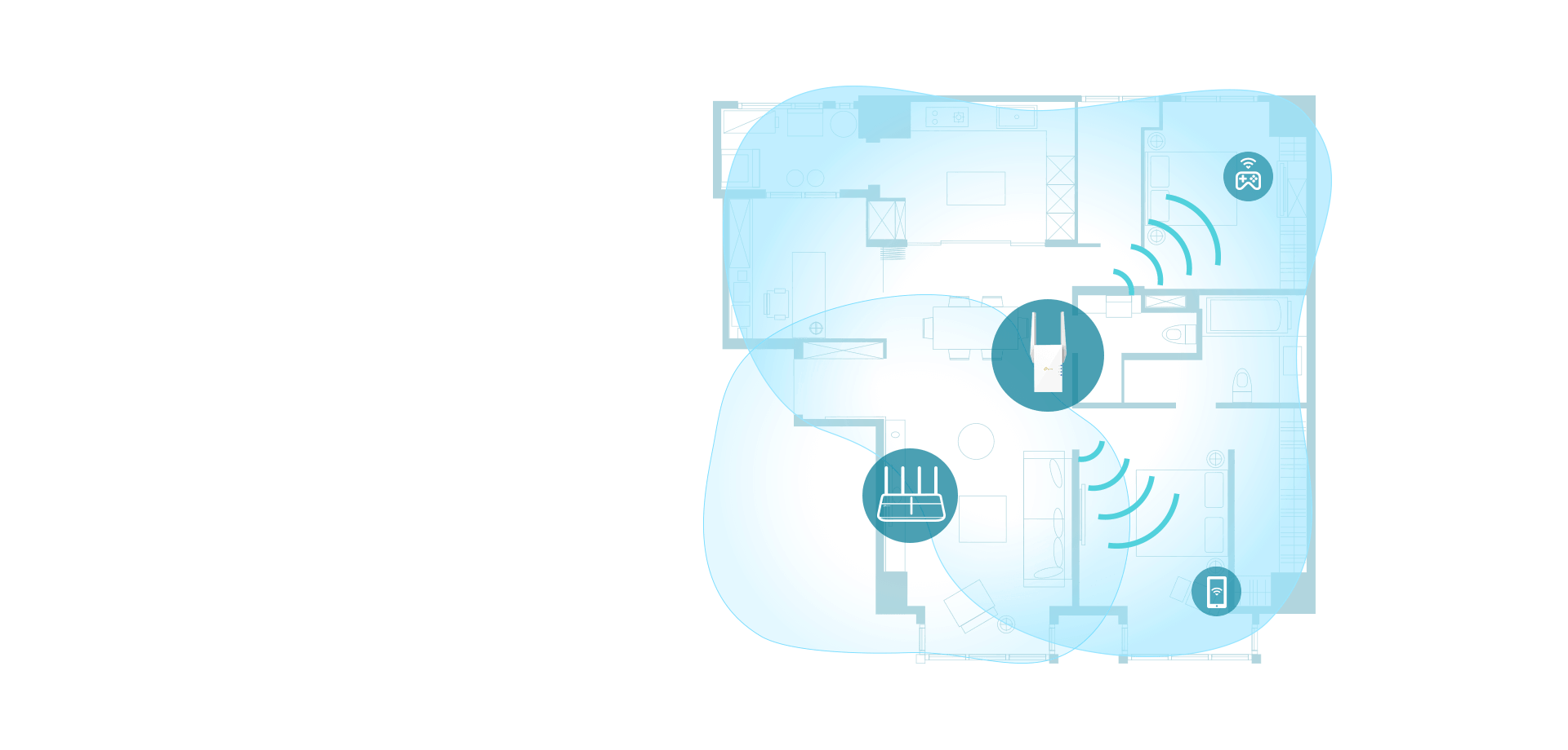 單個路由器的WiFi覆蓋範圍有限,並且總是會導致WiFi盲區。RE605X無線連接到您現有的路由器,並增強整個家庭的更多WiFi信號,讓您以極快的速度,容量和覆蓋範圍隨時隨地享受流暢的WiFi 6網路體驗。