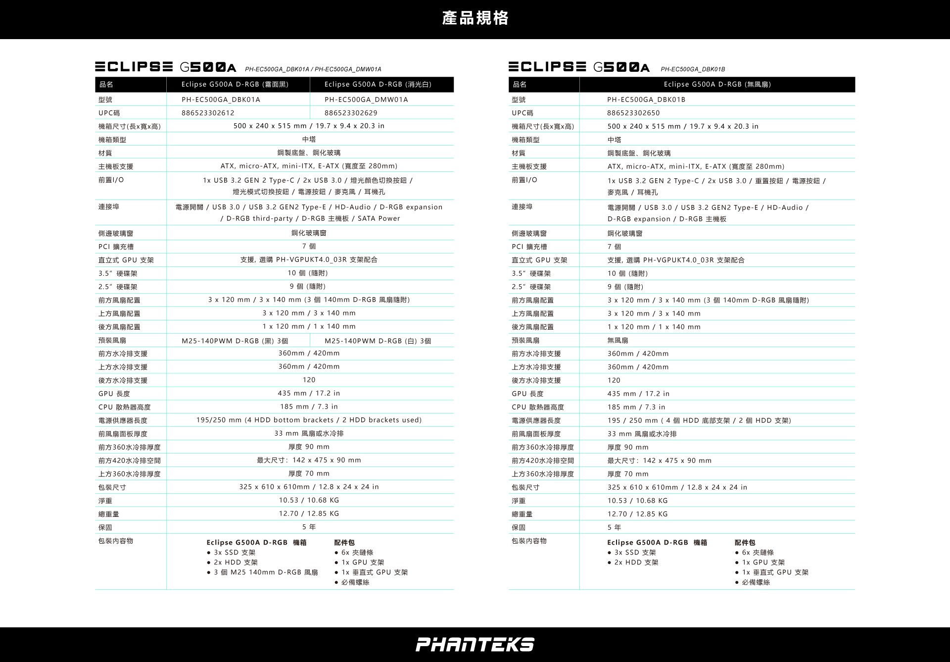 PHANTEKS ECLIPSE G500A DRGB 直立式中塔機箱(黑色)