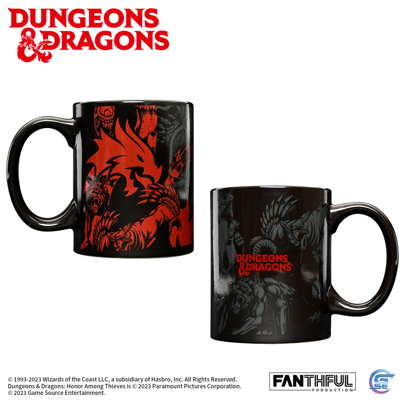黑色的杯身上,紅色與銀色的怪物圖案相互碰撞,暗流湧動,頗具緊張感。而紅色的“龍與地下城(Dungeons & Dragons)”LOGO矗立在銀色圖案面之中,震懾全場。除此之外,更是搭配一枚20面骰子圖案主題的紙杯墊,兩者組合,妙趣橫生。