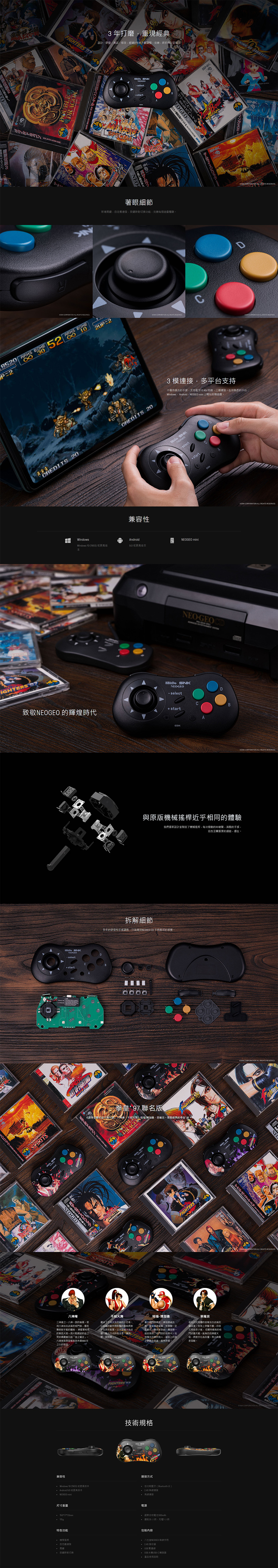 - Compatible with Windows and NEOGEO mini via 2.4G adapter/USB cable, and Android via Bluetooth