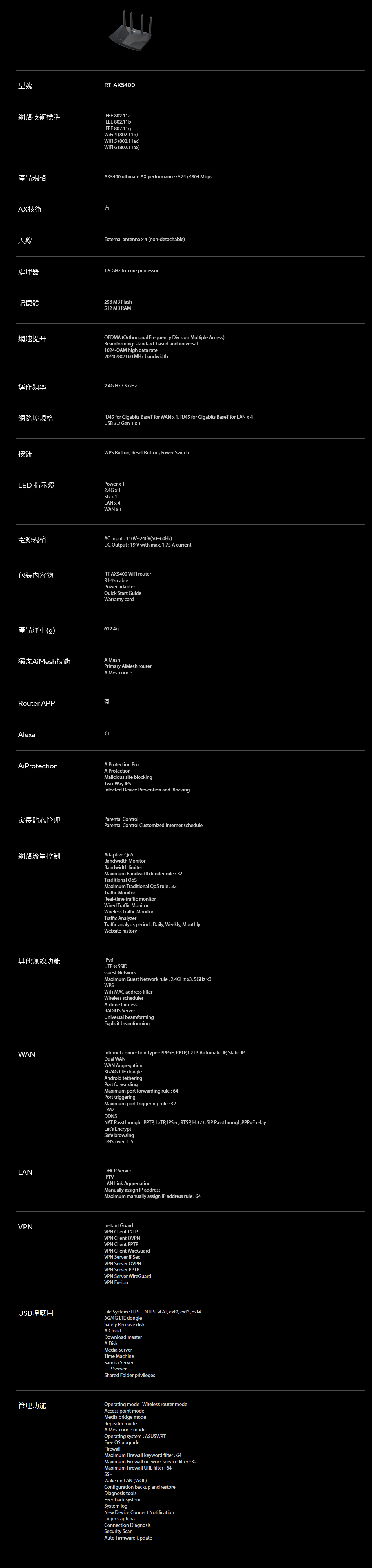 ASUS RT-AX5400 Wireless-AX5400 雙頻路由器(WIFI 6)(RT-AX5400)