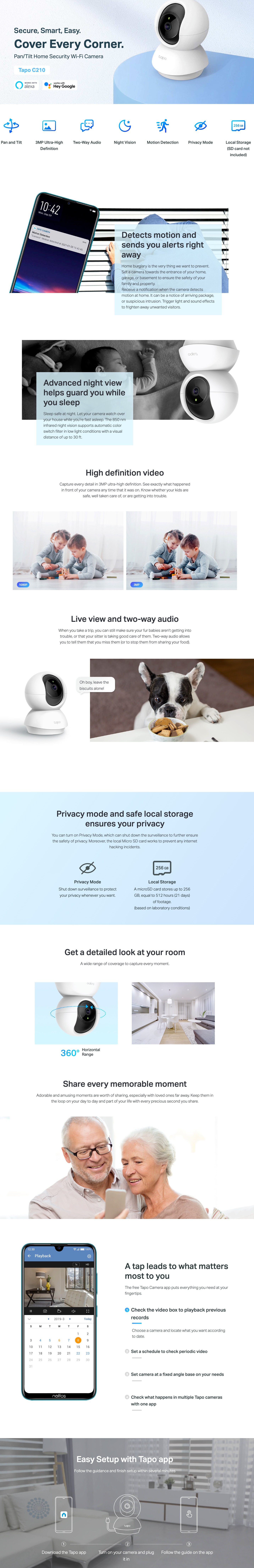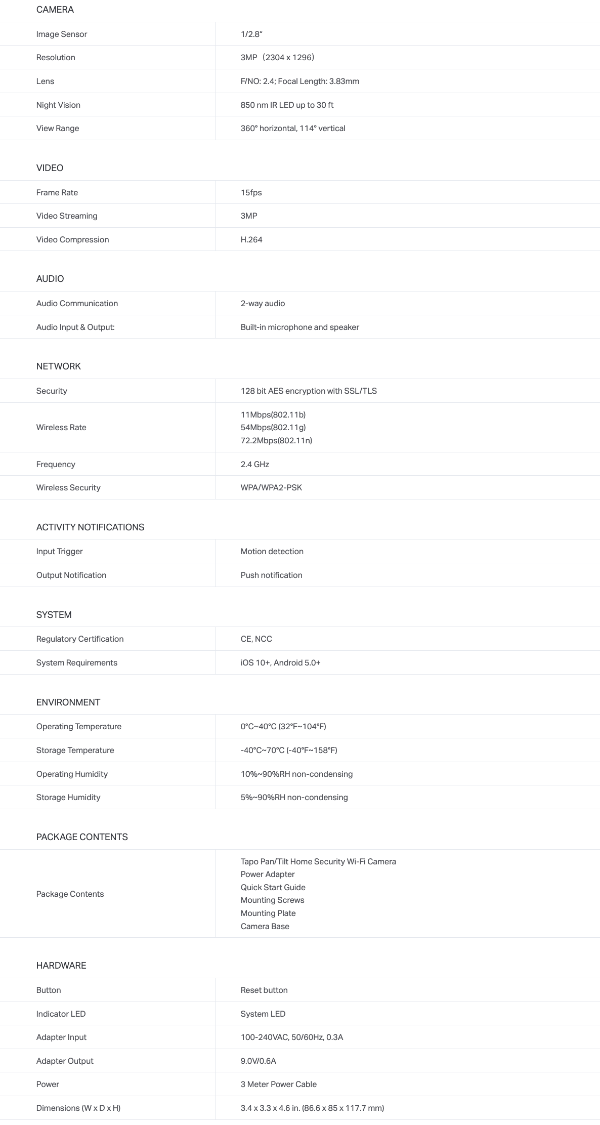 • Motion Detection and Notifications: Notifies you through Tapo App when the camera detects movement.