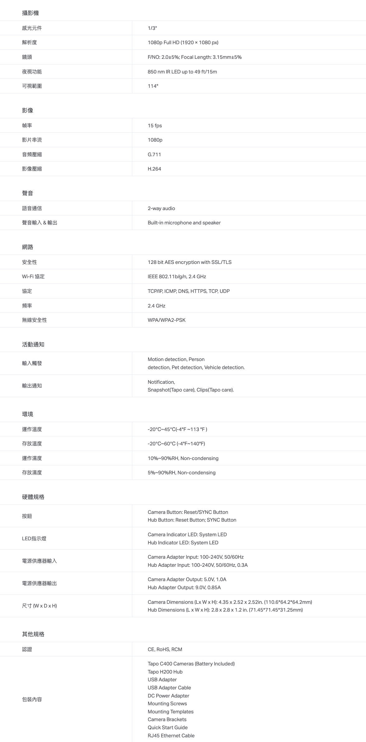 電池類Tapo雲端攝影機及視像門鈴產品保養期為一年。