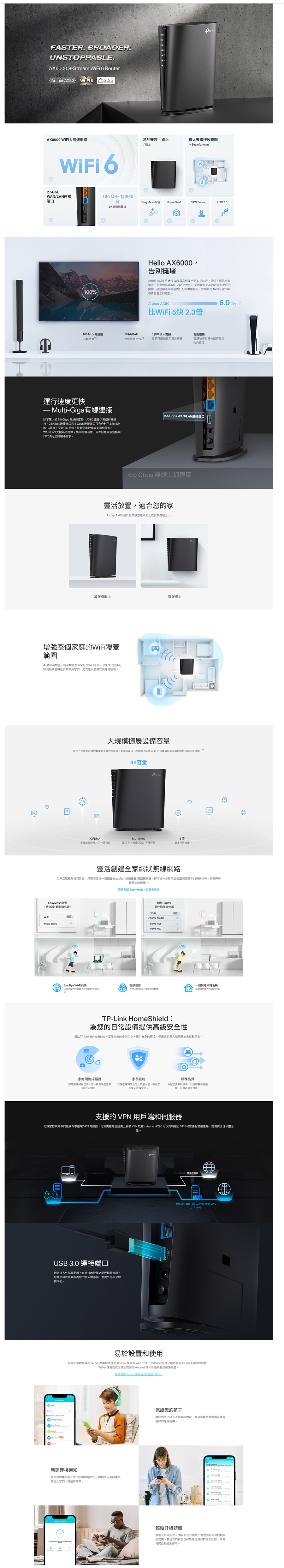 | 包裝內容 | • Wi-Fi Router Archer AX80 • Power Adapter • RJ45 Ethernet Cable • Quick Installation Guide |