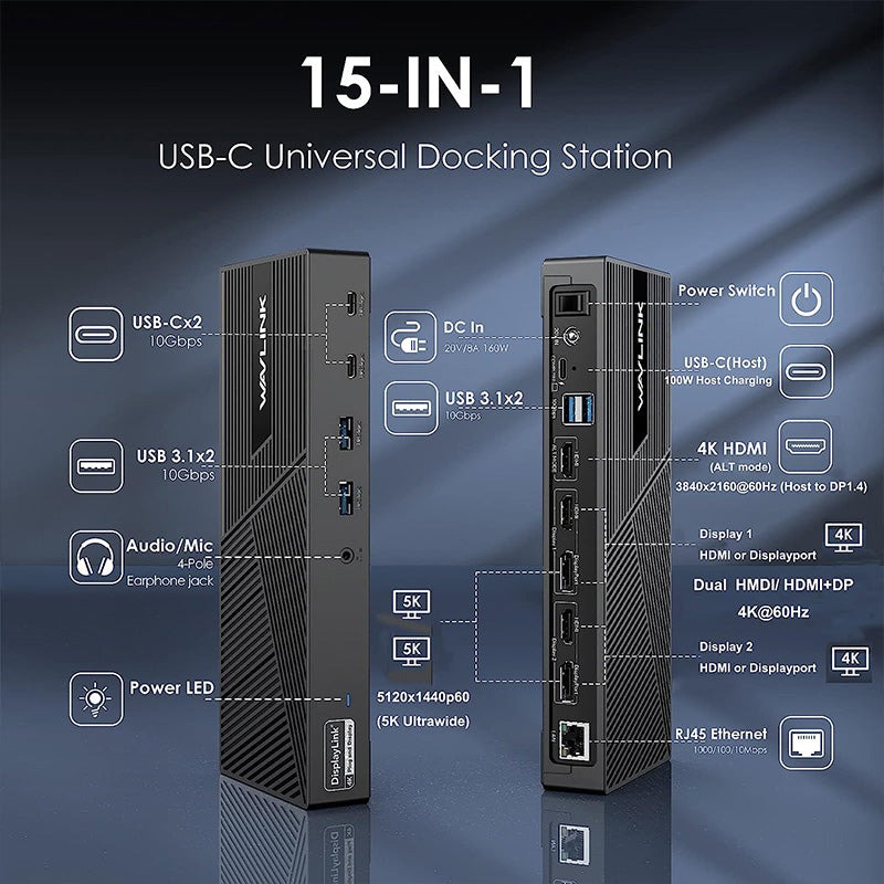 - 3 x HDMI (HDMI2.0) + 2 x DP (DP1.2),最高支持三重 4K@60Hz 分辨率顯示