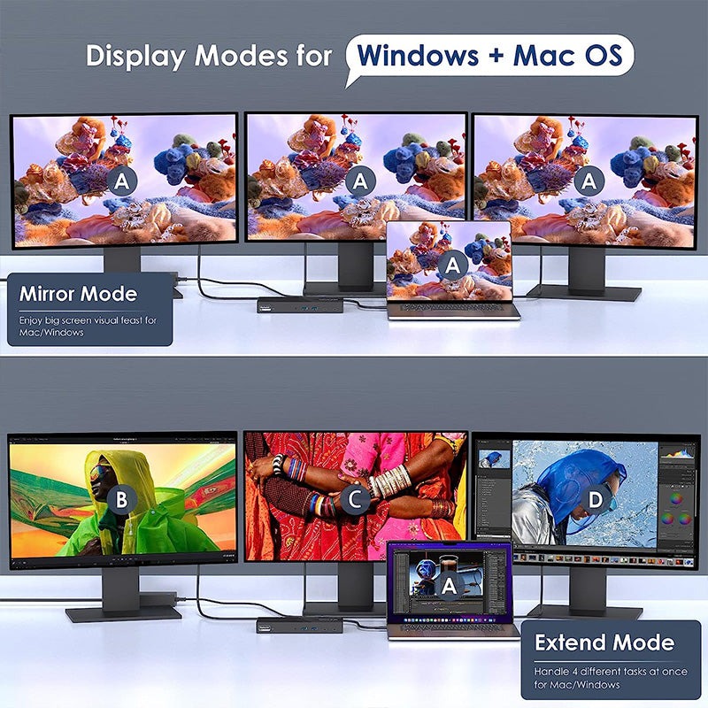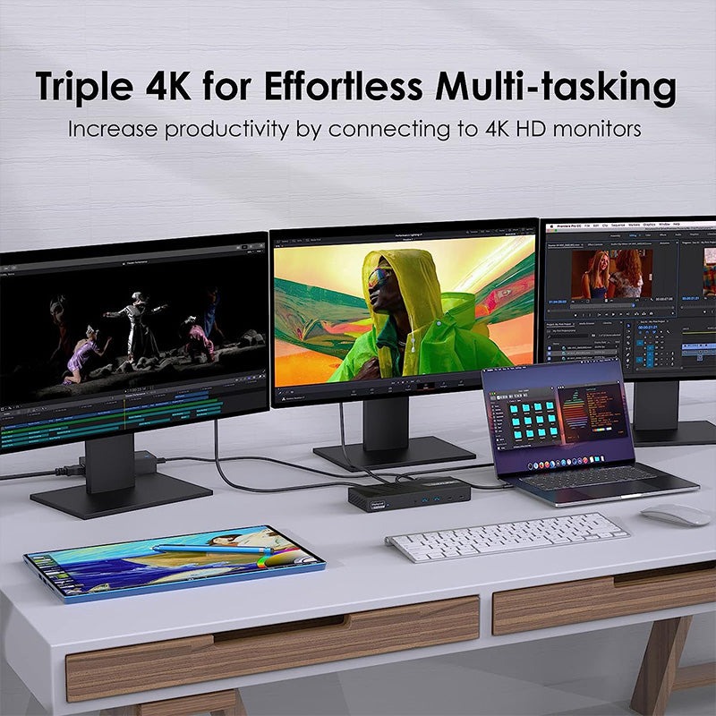 - ・當您將此擴展塢放在顯示器下方時,平放水平設計可節省寶貴的桌面空間