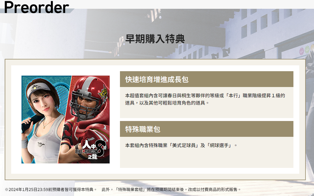 此道具包內含可讓春日與桐生等人的等級和「本行」職業階級提昇1級的道具套組等內容,可用來培育角色。