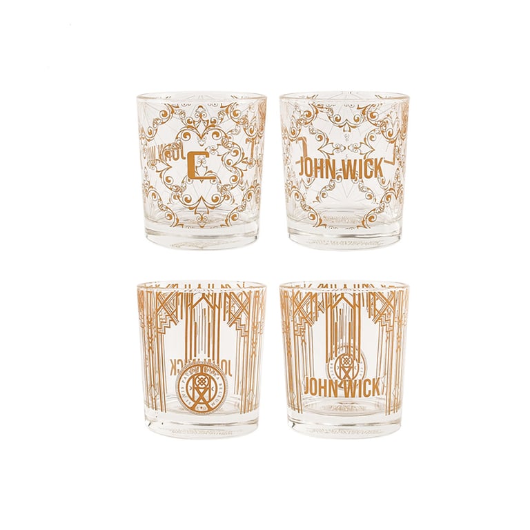 洲際酒店有著不準殺戮的規則,可是,一片寂靜與和平在John Wick放下酒杯的瞬間被打破了。杯上印有代表了洲際酒店的“C”字樣的花紋錦簇,配搭緊密的線條及高桌圖案,象徵肅穆的權威。隨購買玻璃對杯,附送主題紙杯墊。