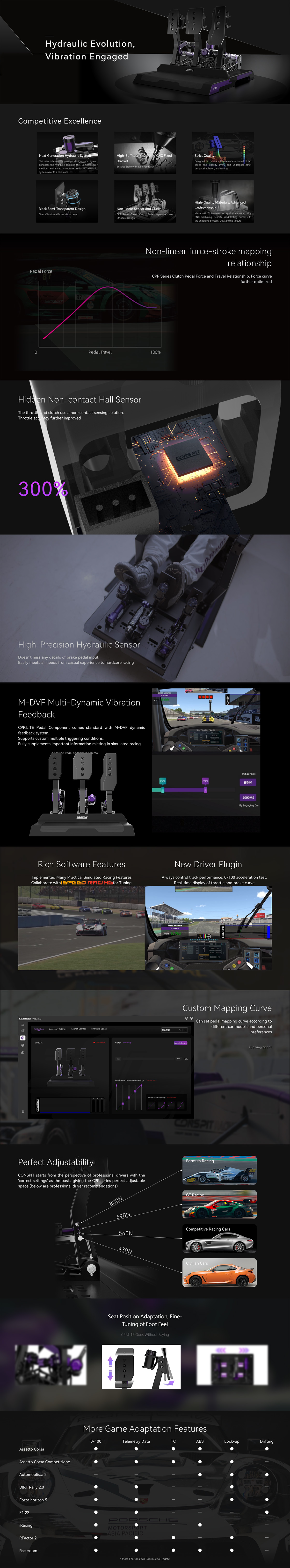 制動使用液壓感應器讀取制動力。 油門及離合器使用高精度hall sensor。