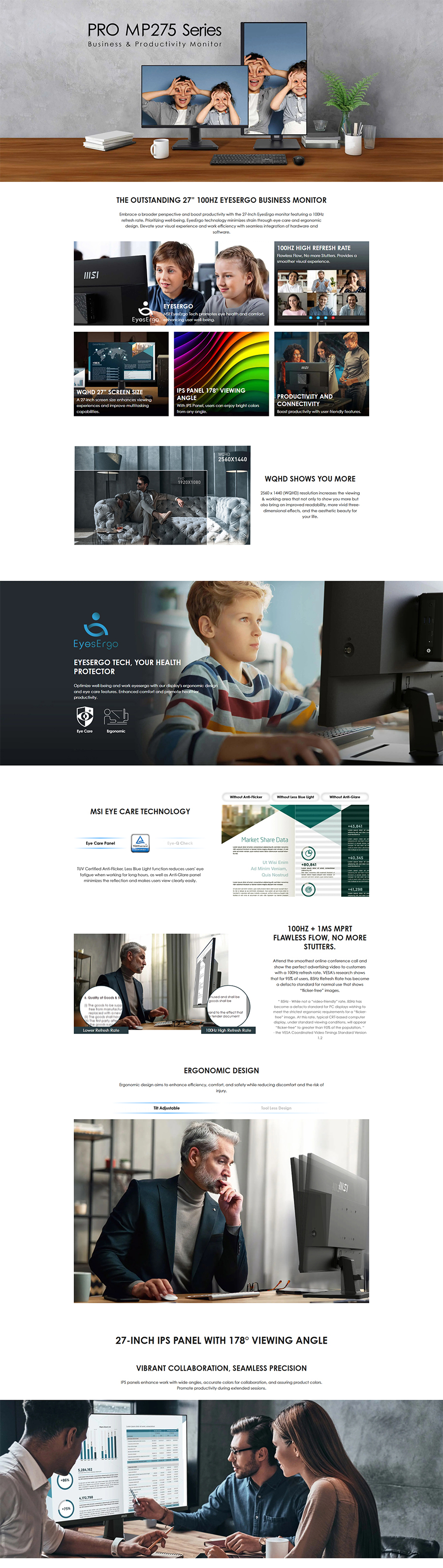 - MSI EyesErgo technology with Anti-Flicker technology helps prevent eye strain and fatigue.