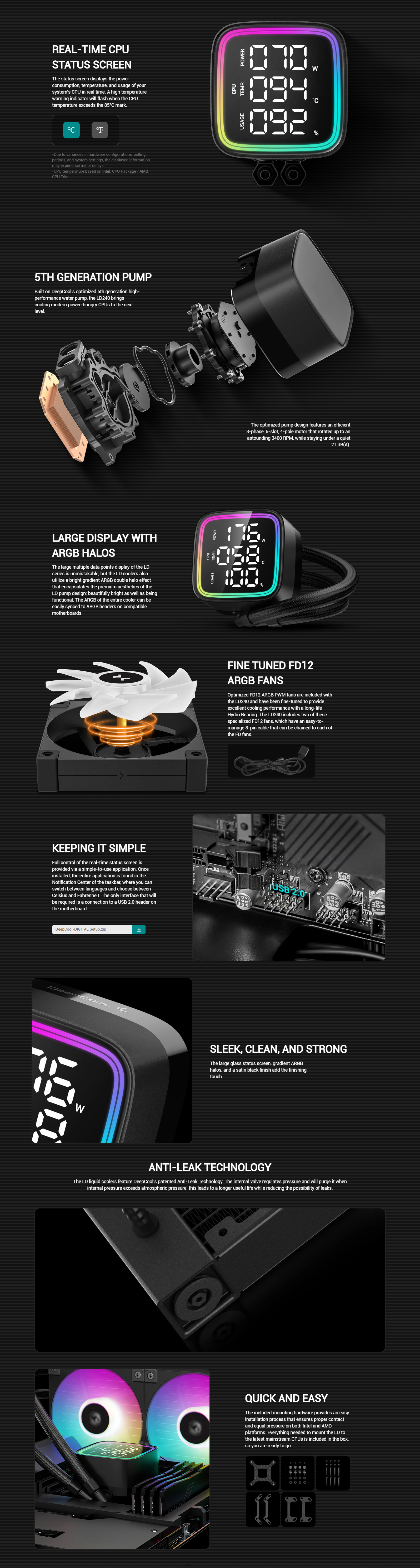 - -Deepcool 5代高性能水泵,PWM可調速范圍3400 RPM±10%
