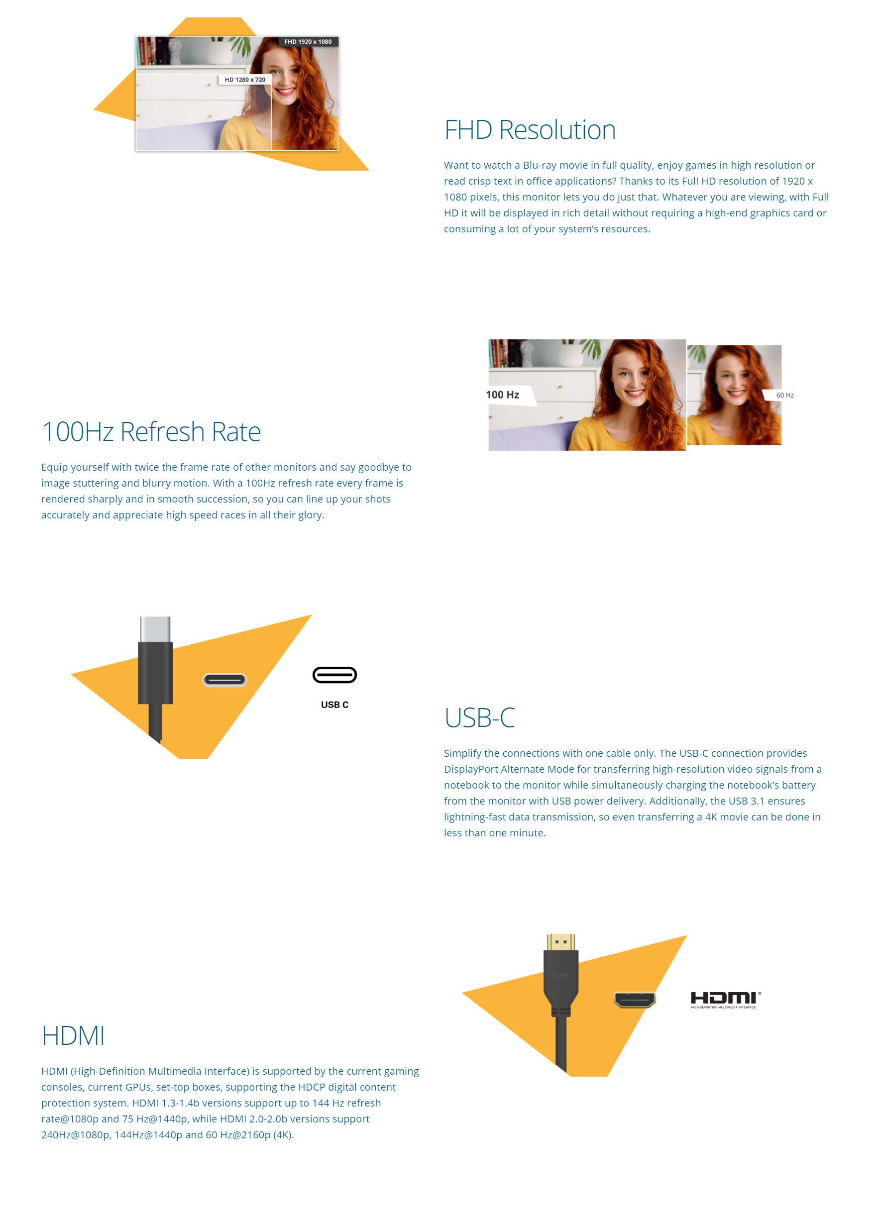 Compact brilliance with USB-C connectivity and Height-Adjustable Stands for enhanced productivity