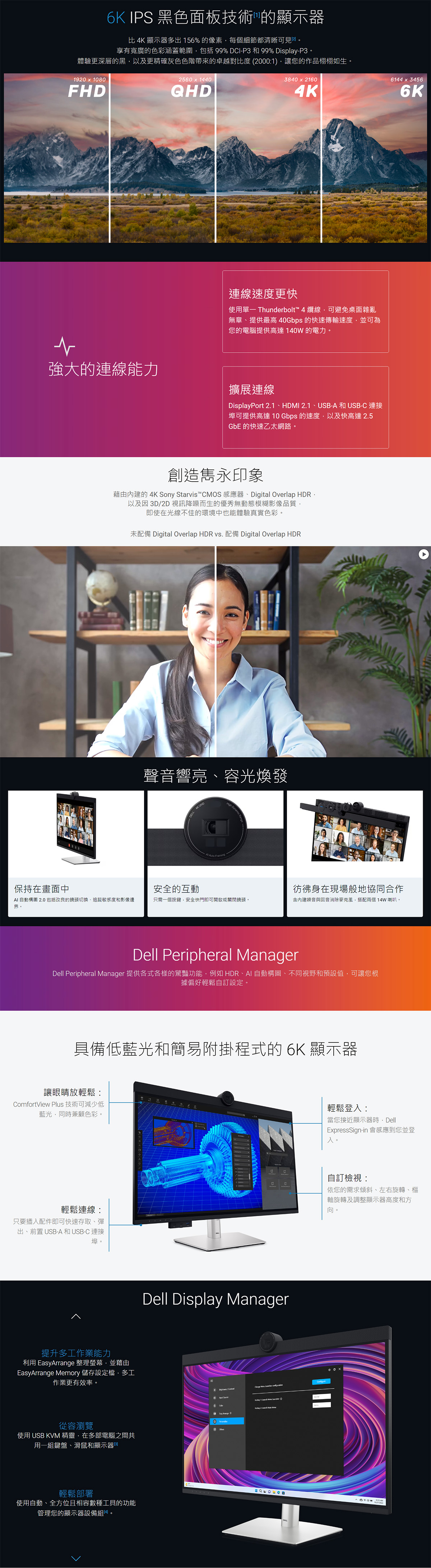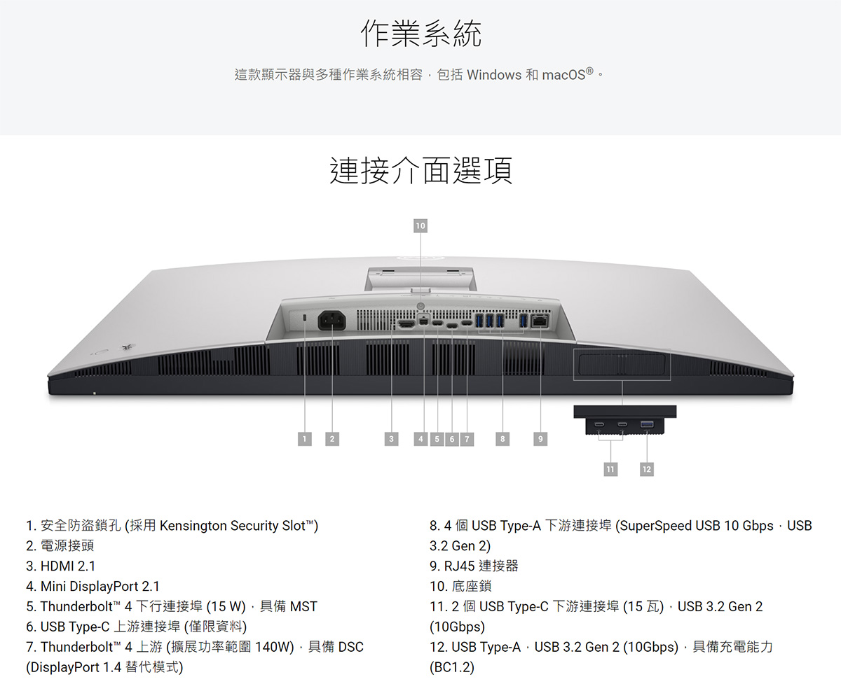 Microphone array, KVM ports, USB 3.2 Gen 2/USB-C集線器, webcam