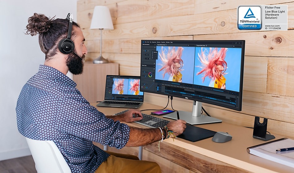 沉浸於這台 34 吋曲面 WQHD (3440 x 1440) 顯示器深邃的黑色、生動鮮明的色彩之中,並享有卓越的生產力。