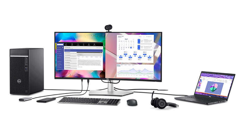 使用超高速 USB-A 和 USB-C 連接埠連線至各類裝置,並透過 DP 1.4 HDMI 2.1 連接埠擴充連線能力。