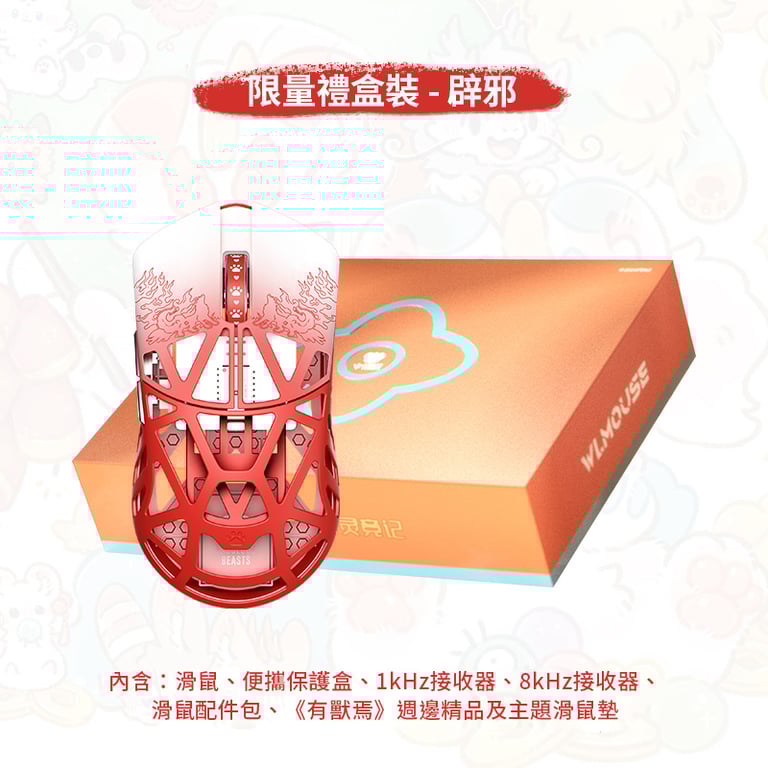 WLMOUSE《有獸焉》聯名版 Beast X 8K 超輕量遊戲滑鼠禮盒裝(辟邪)(辟邪)