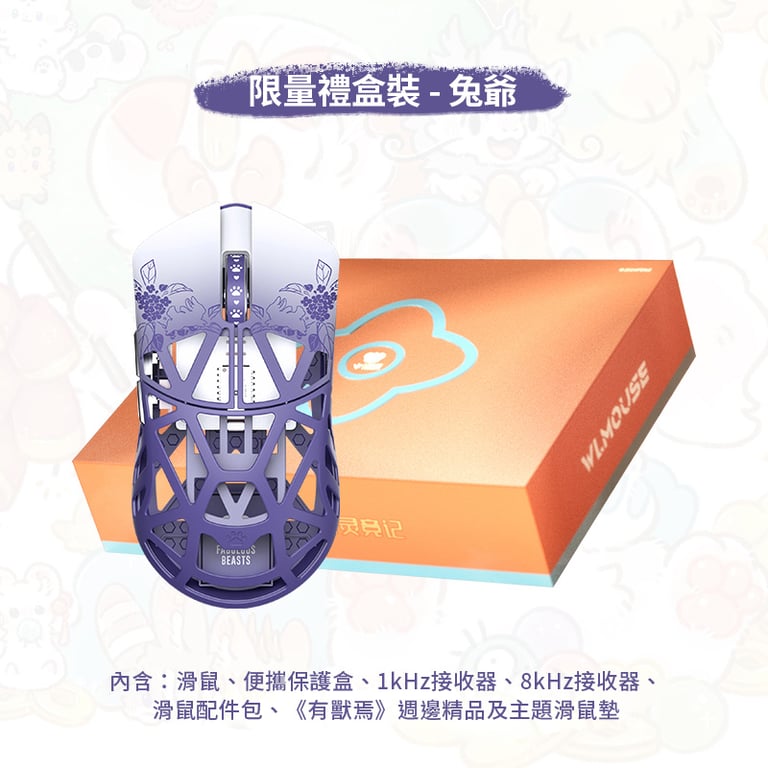 WLMOUSE《有獸焉》聯名版 Beast X 8K 超輕量遊戲滑鼠禮盒裝(兔爺)(兔爺)