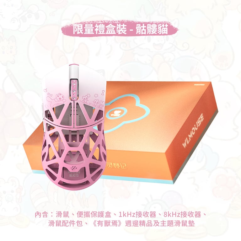 WLMOUSE《有獸焉》聯名版 Beast X 8K 超輕量遊戲滑鼠禮盒裝(骷髏貓)(骷髏貓)