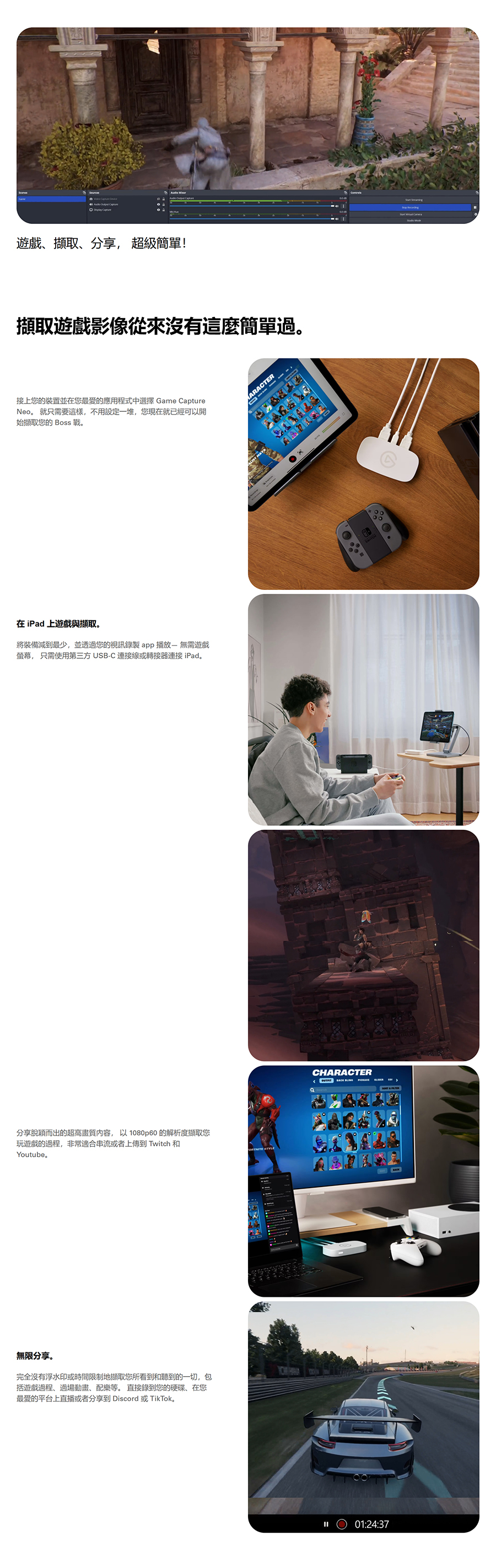 它可以將您的遊戲機連接到您的遊戲螢幕和筆記型電腦或 iPad,讓您可以專業地進行錄製或串流。