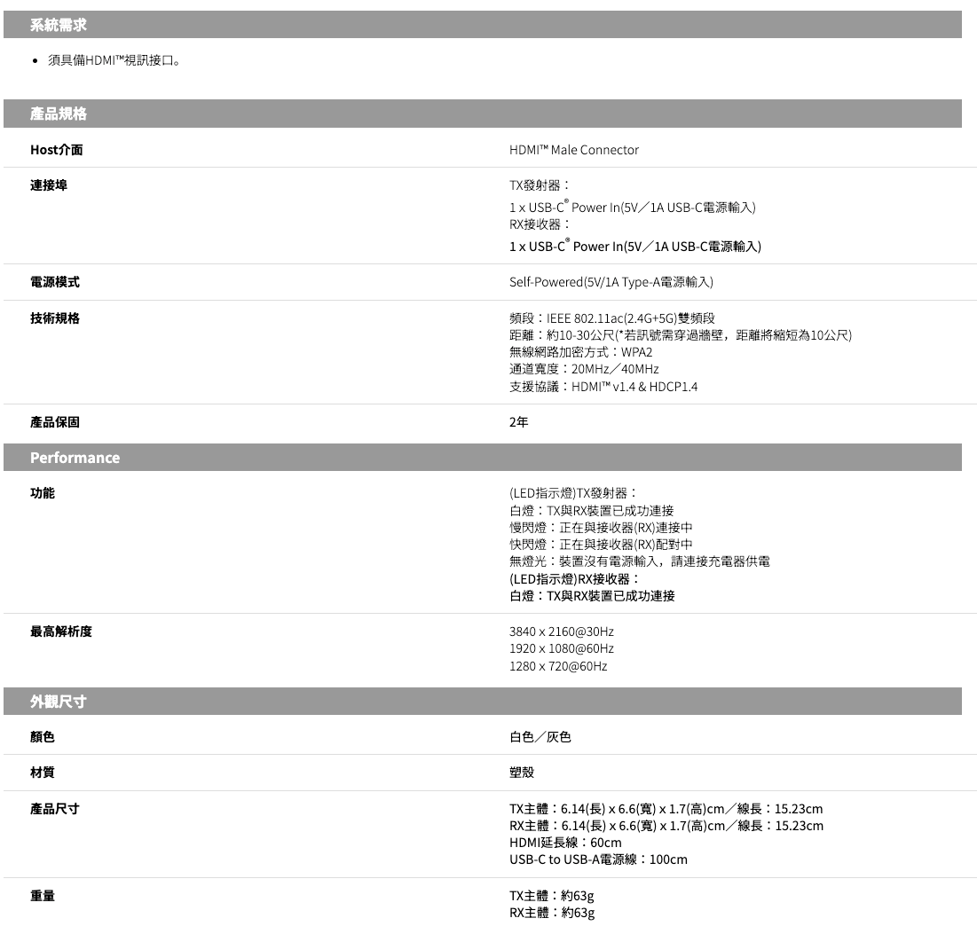 產品規格