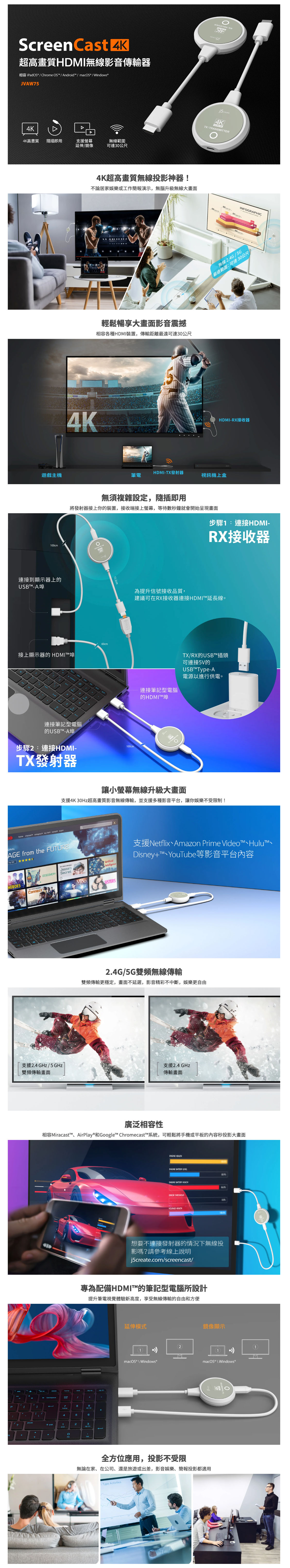 JVAW75無線影音傳輸器,是一款容易使用的4K超高畫質無線投影解決方案,