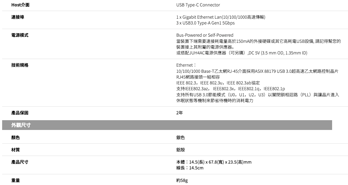 可讓您輕易的擴充3個USB 3.0埠及一個網路埠,1000M Gigabit的網路環境提供您更高速、穩定及保密性的有線方式,是使用者在沒有無線上網環境時的最佳解決方案。
