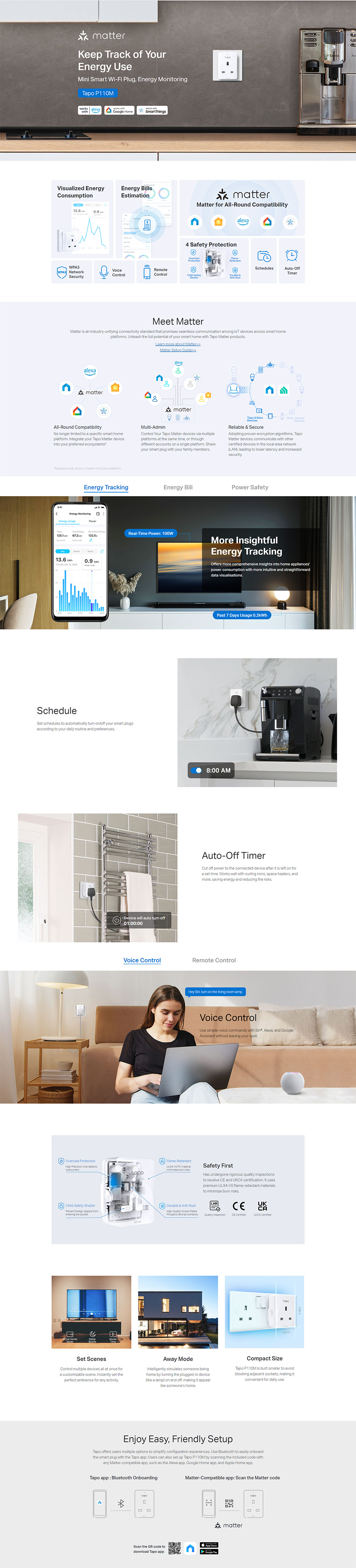 - Matter Certified – Integrate Matter-certified Tapo devices with other Matter end products into your preferred ecosystem.