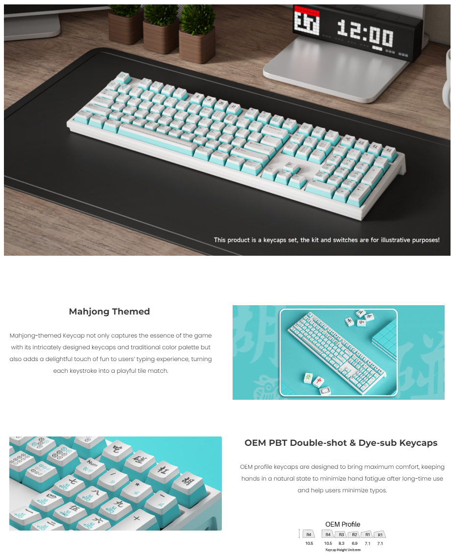 - OEM Profile Dye-sublimation Keycaps;