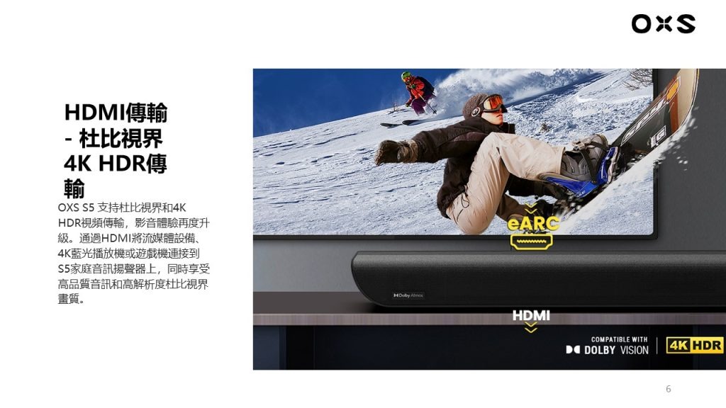- 支援 HDMI eARC,與電視、播放器、遊戲機一線連接