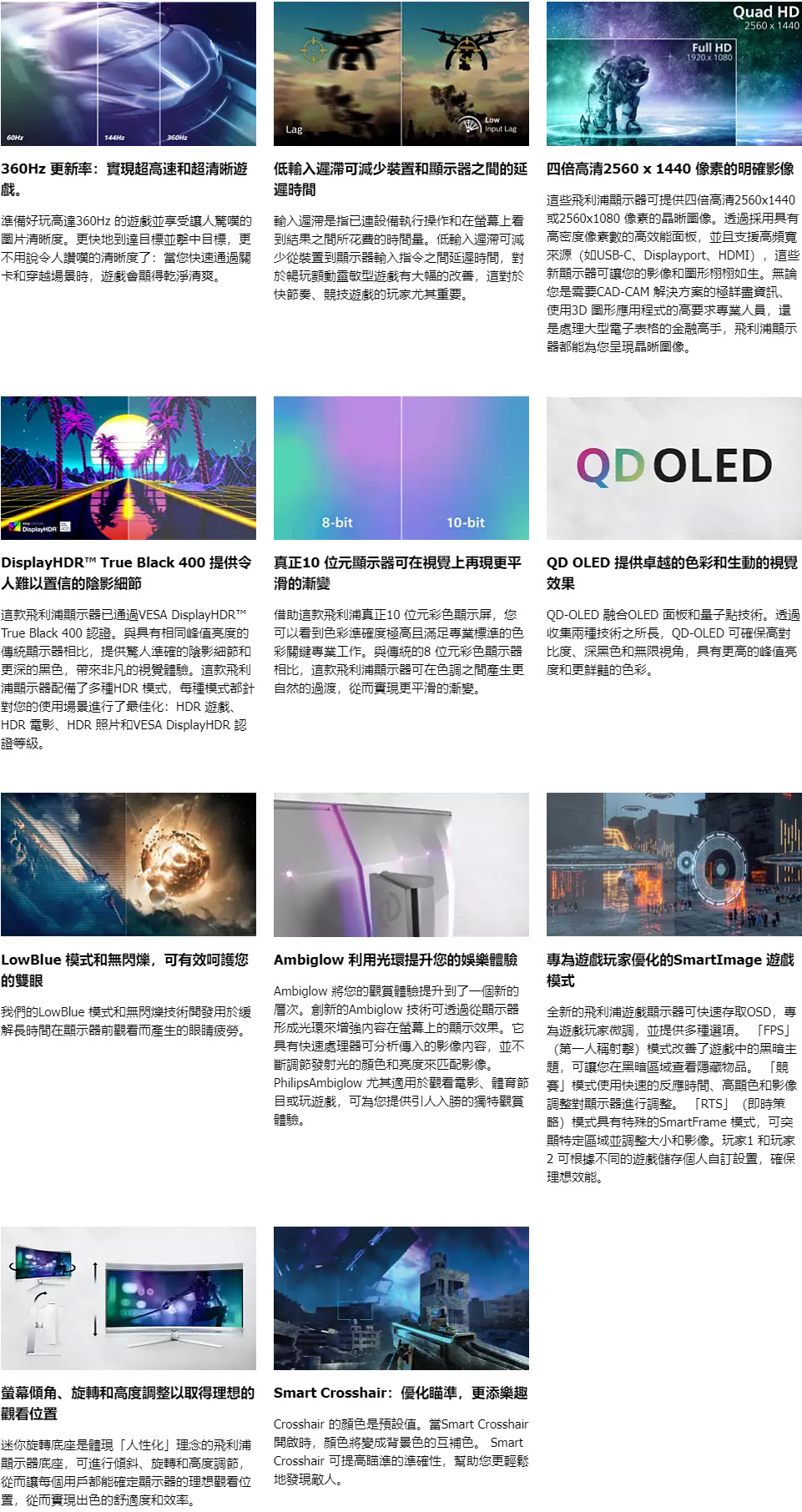 這款顯示器專為高速運動遊戲而設計。顯示器擁有360Hz 更新率、QD OLED 面板並獲得DisplayHDR TrueBlack 400 認證,是極高速度與優異畫質的完美結合。