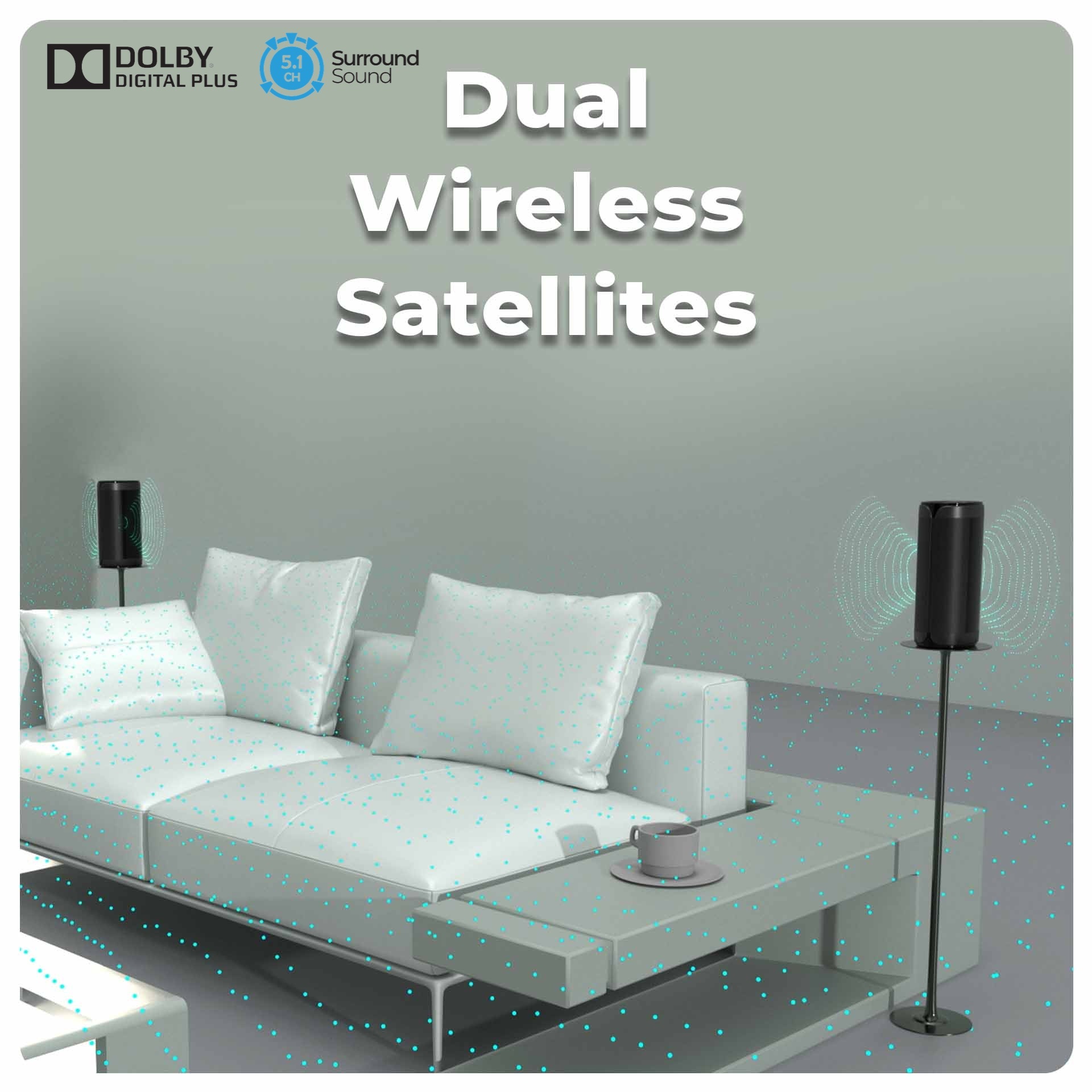 享受真正的無線5.1電影環繞聲效,及提供USB電源供應器供電。