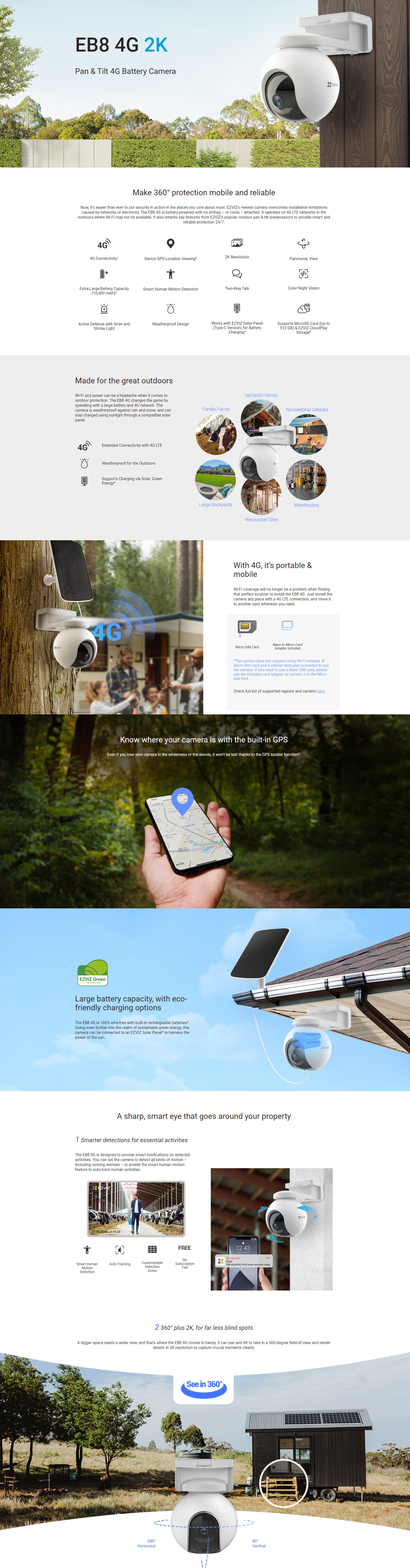 EZVIZ EB8 4G 戶外360° 2K 4G LTE 電池攝錄機