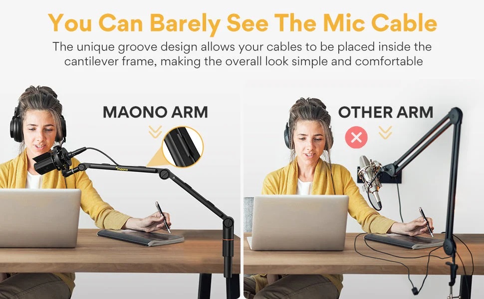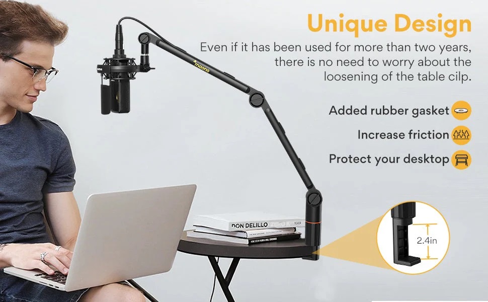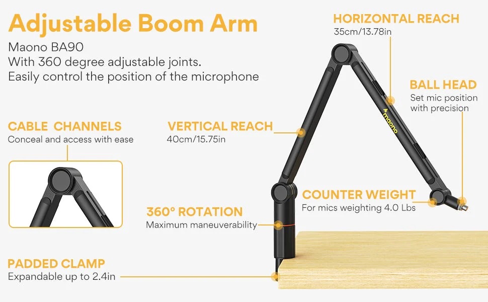 Maono 麥克風吊臂,[堅固][穩定][可360° 可調]可旋轉麥克風吊臂支架,帶3/8 英寸至5/8 英寸適配器,重型麥克風支架,適用於廣播工作室、播客、遊戲。