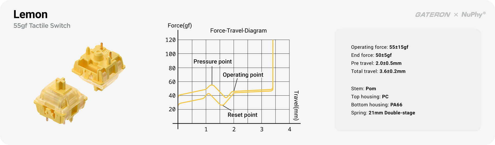 - total travel: 3.6±0.2mm