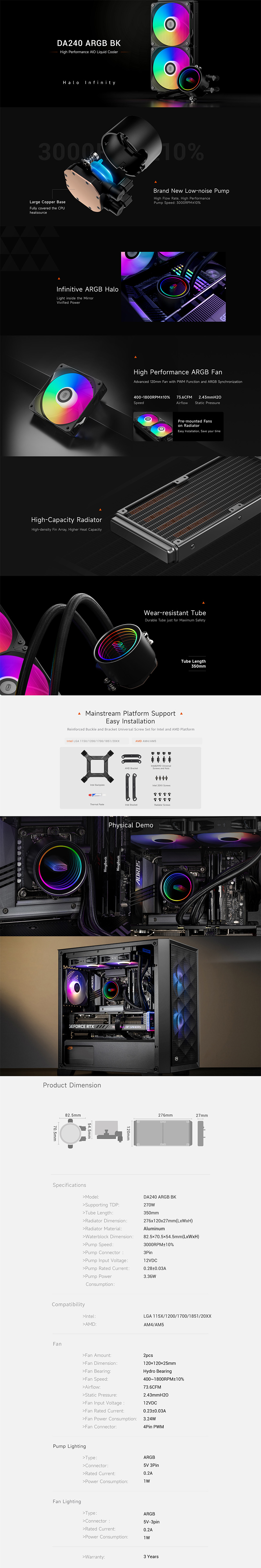 PCCOOLER DA240 ARGB WHITE 水冷散熱器(PCC-DA240-ARGB-WH)