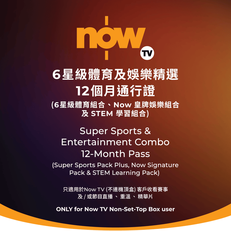 • 內容包括: 6星級體育組合/ Now 皇牌娛樂組合/ STEM學習組合/ 精選播送頻道