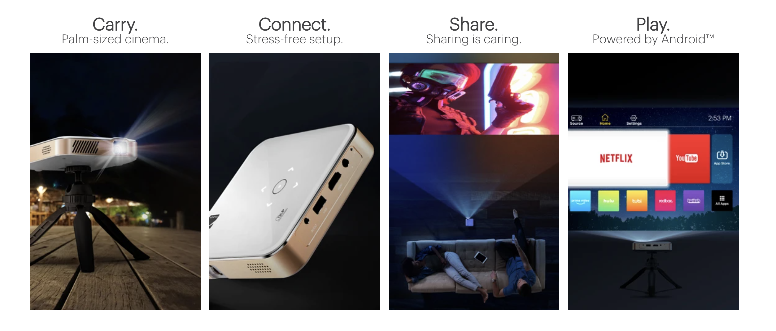 Kodak Luma 450 便攜式智能投影機利用突破性的TI DLP數字光處理技術渲染4K視頻和圖像,並具有驚人的色彩,影像清晰度達致200 ANSI流明的亮度,寬大規模顯示影像高達150英寸,並與iOS或Android Luma App一起使用以進行直接的無線接駁。
