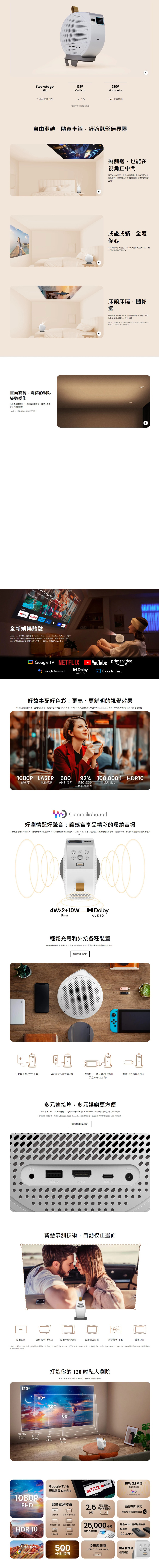• 靈活底座設計,專為床邊投影天花板而生,可轉、可傾斜,讓您自由選擇躺臥姿勢。